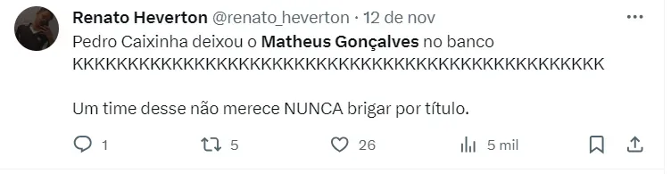 E trata-se de Matheus Gonçalves, de apenas 18 anos de idade, que está emprestado ao Bragantino neste momento. O Newcastle está interessado no jovem e pode chegar com uma grande oferta em breve.