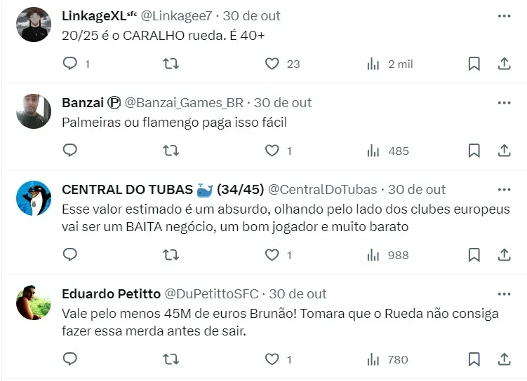 O Santos já está ciente do interesse do Newcastle e nutre esperanças de concluir uma venda no valor de até R$ 134 milhões (com uma faixa entre R$ 107 e 134 milhões). Essa quantia seria bem-vinda para o Peixe, que enfrenta uma crise financeira.