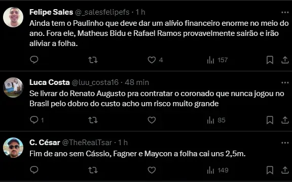 O dirigente confirma que as contratações de Igor Coronado e Matheuzinho vão manter a folha salarial do Timão no mesmo patamar do que foi em 2023. Ao contrário do que havia sido pensado antes.