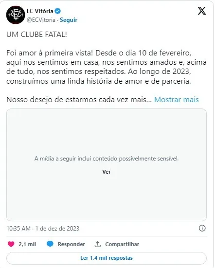 Nossa parceria sempre foi pautada no diálogo e no respeito. Por isso, queremos te ouvir, torcedor. Afinal, vocês são o maior patrimônio do clube e as negociações só serão iniciadas com um aval positivo da torcida. Vamos juntos criar um EC Vitória cada vez mais forte?