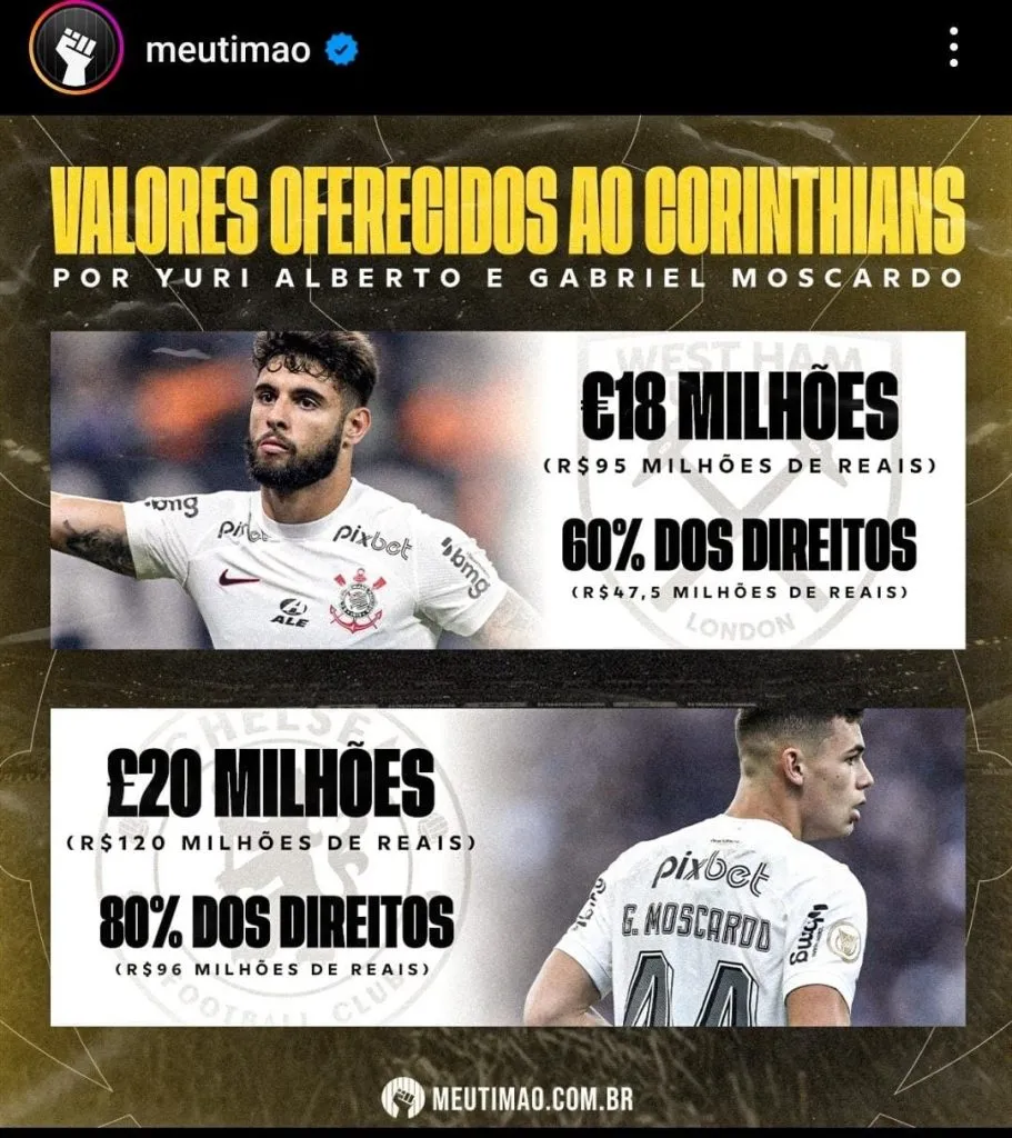 Segundo o portal “Meu Timão”, o Coringão recusou uma oferta de R$18 milhões de euros (aproximadamente R$ 95 milhões) por 60% de Alberto, o que daria R$ 47, 5 milhões.