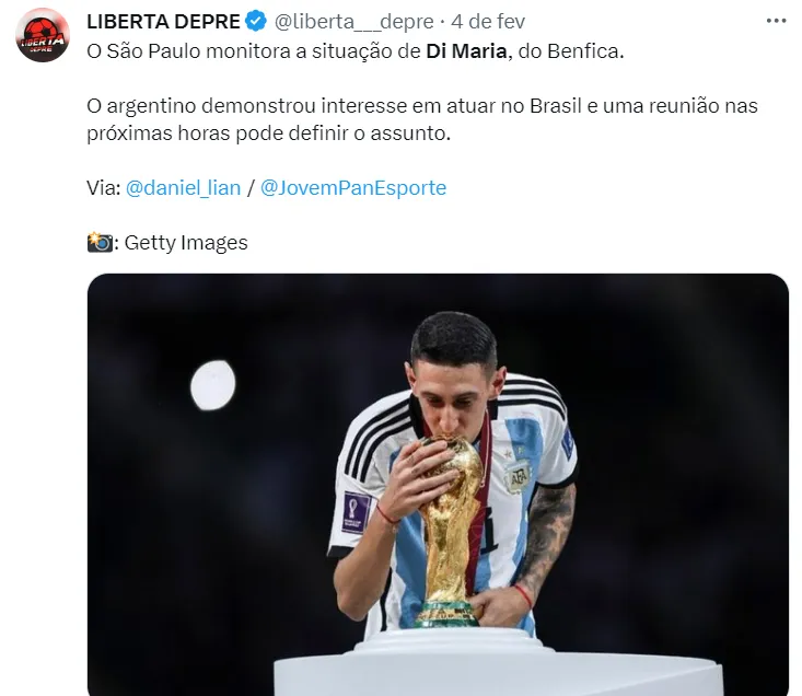 Depois do São Paulo, surge mais um clube do futebol brasileiro interessado na contratação do renomado argentino Di Maria, de 35 anos de idade, atualmente, no Benfica, de Portugal.