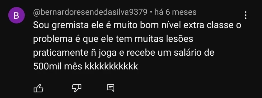 Conforme repercutido pelo jornalista Kaliel, o Tricolor entende que a resposta do atleta em campo não corresponde ao seu salário, que segundo a fonte, é um dos maiores do elenco gremista.
