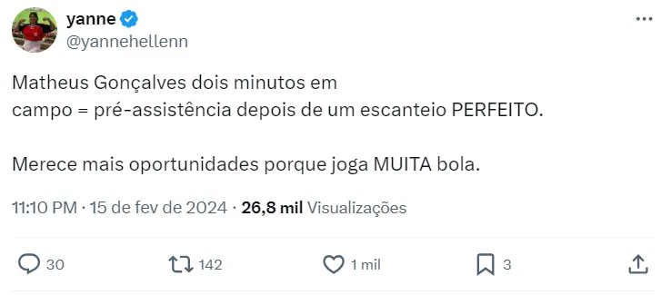 Gonçalves tem apenas 18 anos de idade e nunca chegou, de fato, a brilhar com as cores do Flamengo. Em 2023, ele foi emprestado ao Bragantino, mas também não conseguiu sucesso.