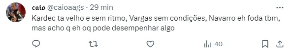 Conforme revelado pelo jornalista, o nome de Eduardo Vargas também chegou ao São Paulo. Entretanto, o perfil do jogador, no momento, não se encaixa com o que a equipe procura.