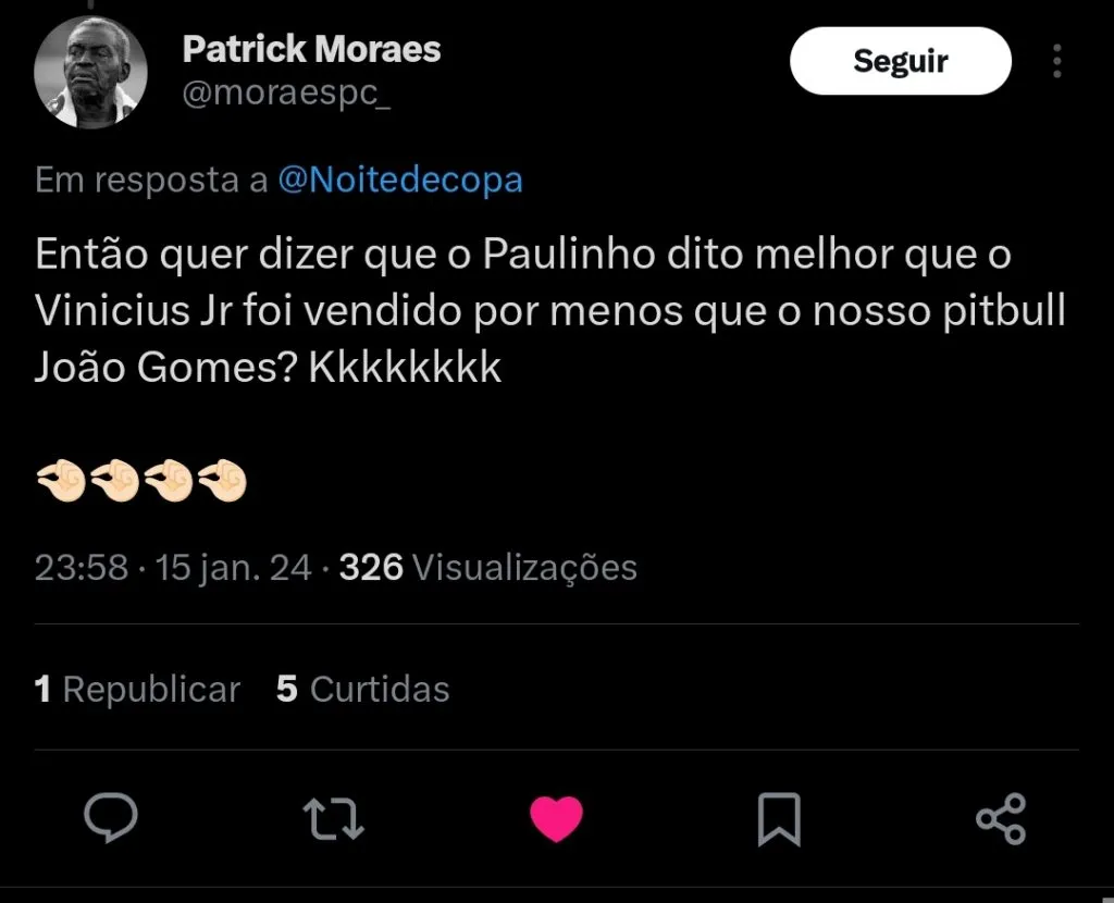 Finalizando o ranking, surge a equipe do Botafogo, que tem a quarta colocação. O top 5 do Fogão foi alterado com a venda de Luis Henrique, e soma o menor valor entre os times.