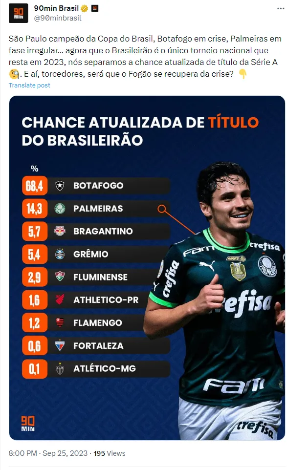 Diante desse panorama, o 90min Brasil divulgou uma atualização no ranking das chances de título do Campeonato Brasileiro, refletindo a atual situação das equipes na competição e suas perspectivas de sucesso.