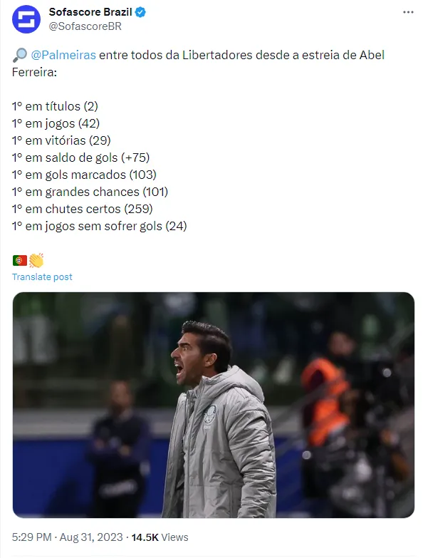 Muito do sucesso do Palmeiras nestes últimos anos é atribuído à permanência e ao trabalho de Abel Ferreira. O treinador português, em um período de dois anos pelo Verdão, já conquistou duas Libertadores, um Campeonato Brasileiro, uma Copa do Brasil, uma Recopa Sul-Americana, uma Supercopa do Brasil e dois Campeonatos Paulistas.