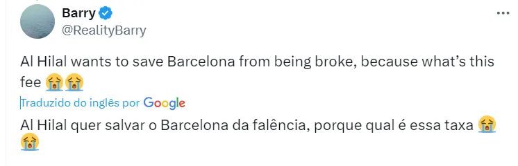 Ainda de acordo com a fonte, o Al Hilal está disposto a pagar para o atacante da Seleção Brasileira um salário três vezes superior ao que ele recebe atualmente no Barcelona.