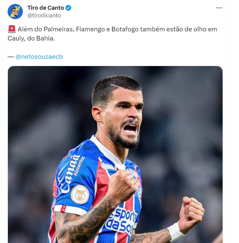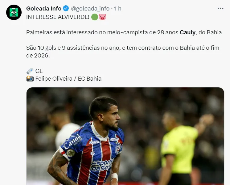 Com o título conquistado, o Palmeiras agora foca na chegada do meia Cauly, grande destaque do Bahia. O jogador, de 28 anos de idade, tem contrato com o clube nordestino até dezembro do ano de 2026.