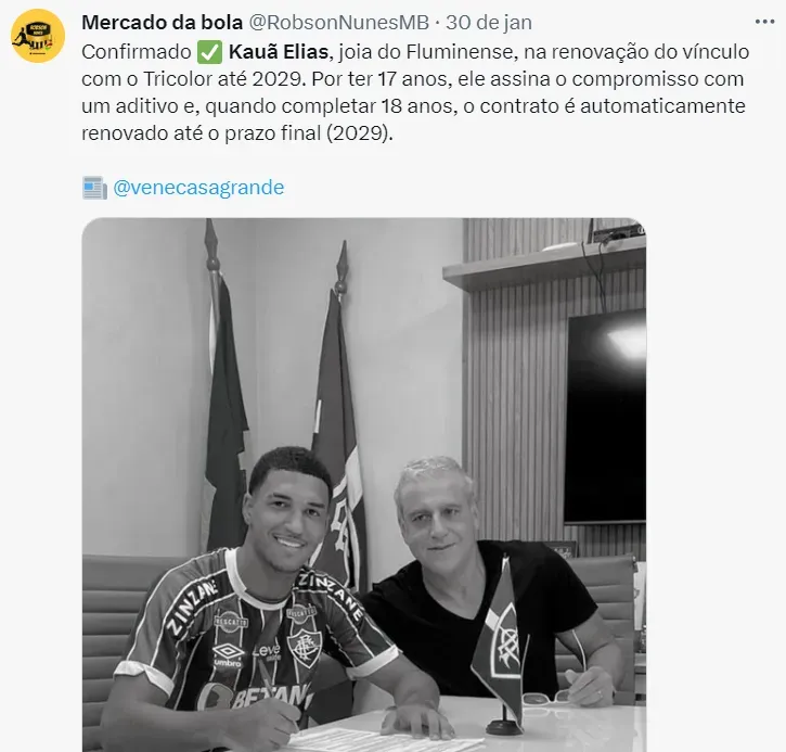 O nome da vez na mira do Real Madrid é o jovem Kauã Elias, de apenas 17 anos de idade, considerado uma das maiores promessas do Fluminense, atual campeão da Libertadores.