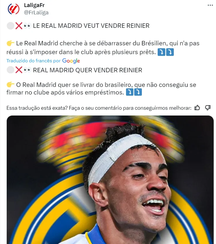 O contrato de Reinier com o clube merengue vai até julho de 2026. No final da temporada, ele está vivendo seu último ano de vínculo e, por isso, os merengues têm pressa em vendê-lo.