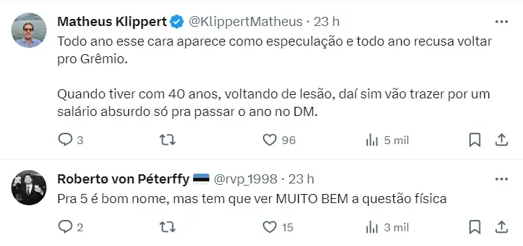O Tricolor ainda não respondeu sobre a chance de contar com o futebol do volante em 2024, uma vez que foca, antes de tudo, em renovar o contrato de Villasanti.