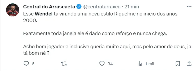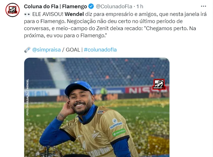 Em agosto, o Flamengo ofereceu 15 milhões de euros ao Zenit por Wendel, mas o clube russo recusou. Assim, a negociação entre as partes acabou emperrando.