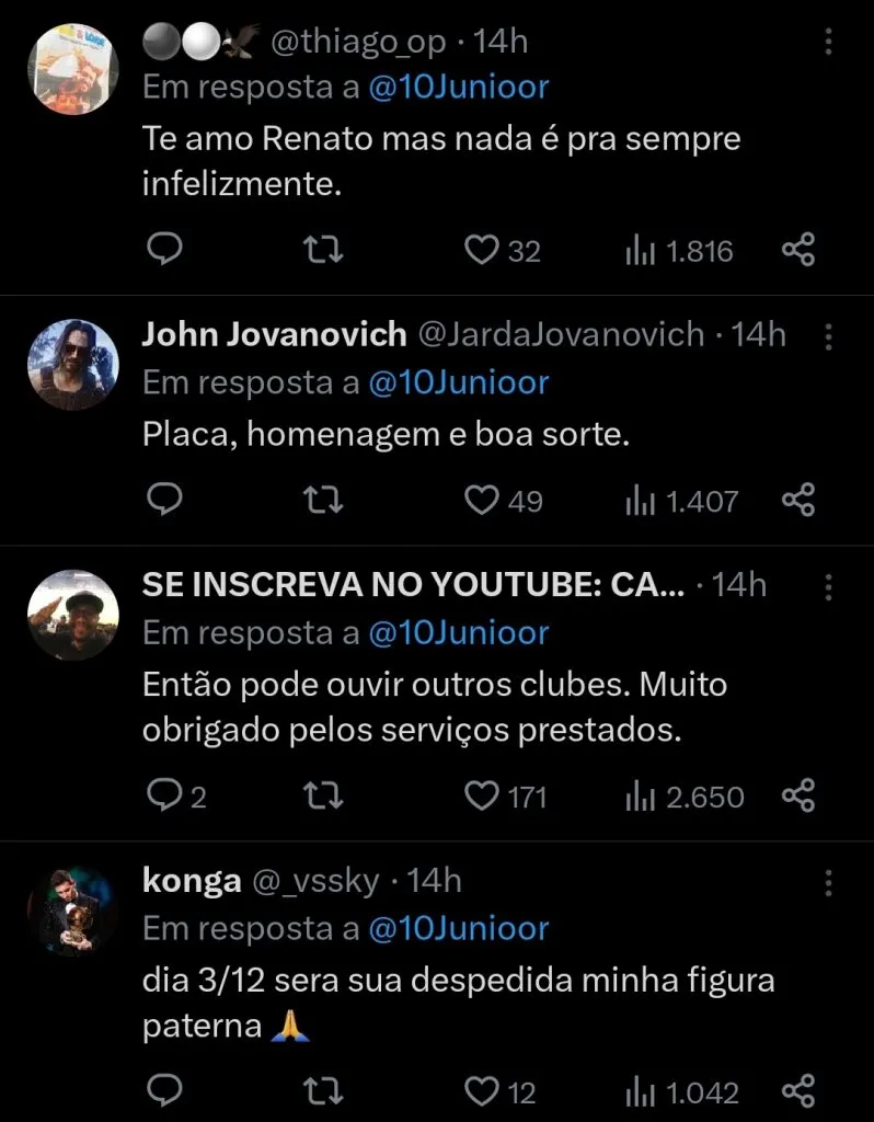 Inclusive, em entrevista após o empate contra o Santos na tarde de ontem (29), o próprio Renato revelou que embora priorize o Corinthians, não descarta fechar com outra equipe em 2024: