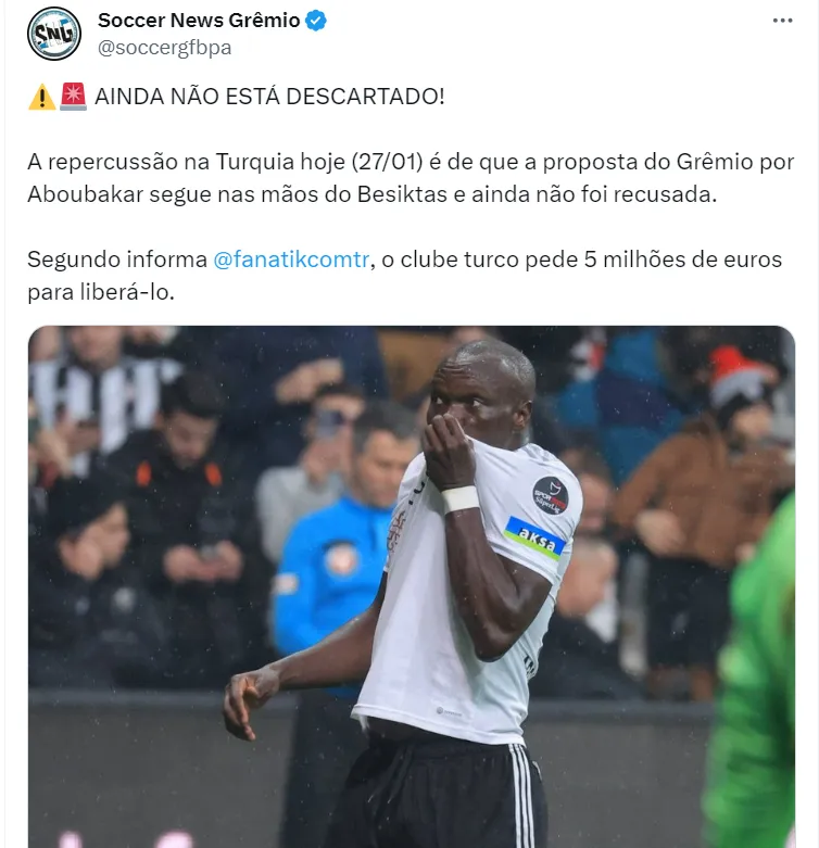 O que deixa o Grêmio em dificuldades no momento é a vontade de Aboubakar, que não deseja deixar o futebol europeu neste momento. Esse, então, é o maior desafio gremista: convencê-lo a jogar no Brasil.