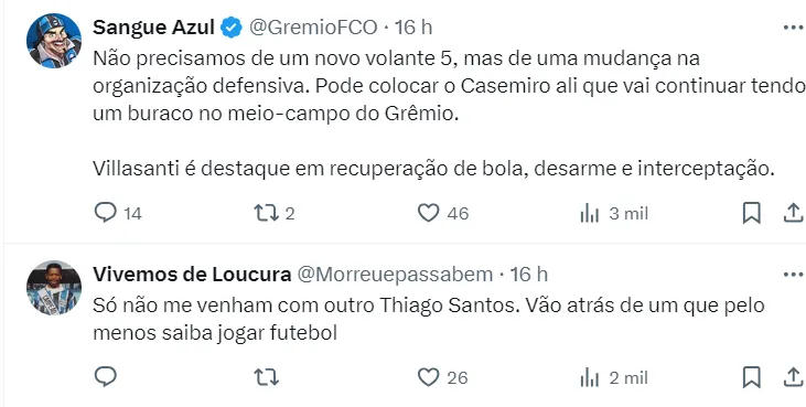 Além de um zagueiro e de um volante de marcação, o Grêmio também tenta, no mercado, a contratação de um ou até mesmo dois atacantes para a temporada. Nomes, por sua vez, também não foram revelados.