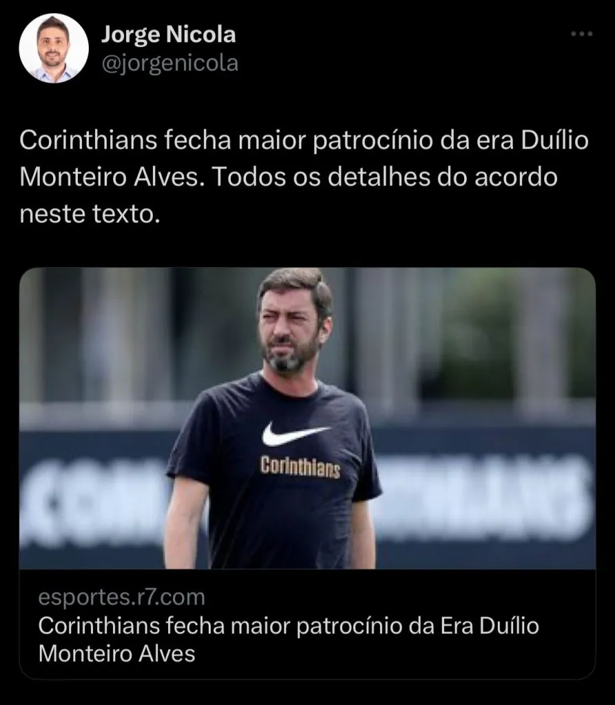 O Corinthians agora pode ter assinado com um novo parceiro, fechando o maior contrato da era Duílio Monteiro Alves no clube.