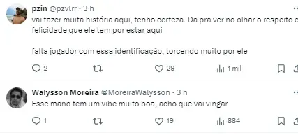 “Depois da Série B, vieram algumas propostas, e eu estava focado no Novorizontino. Se fosse para acontecer, iria acontecer (…) um dia, meu empresário falou que o Palmeiras veio atropelando tudo e eu não pensei duas vezes (…) o Palmeiras é um clube que sempre está brigando por títulos e é visto pelo mundo todo, então, eu disse sim na hora”, disse o jogador que foi anunciado nesta terça-feira (20) como o mais novo reforço do Palmeiras.