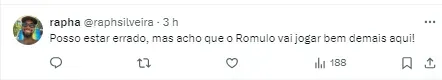 Por outro lado, o clube já anunciou a contratação de mais um reforço: Rômulo. O jogador tornou-se destaque do Novorizontino desde a Série B do ano passado, se firmou neste Campeonato Paulista e chamou a atenção do Palmeiras.