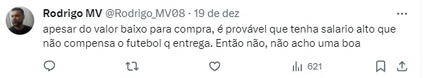 O jornalista conta que o clube tem condições para arcar com a compra em definitiva e já avisou que fará uma proposta nos próximos dias. O nome da equipe, no entanto, não foi revelado.