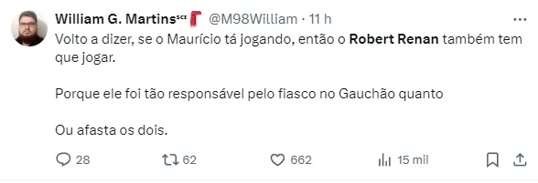 Contratado por empréstimo junto ao Zenit, o defensor de 20 anos soma 13 jogos disputados pelo Colorado, com um gol marcado. Inclusive, Robert não voltou a jogar após a partida diante do Juventude.