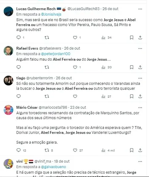 Renato Maurício Prado, durante o programa “Fim de Papo” do UOL, expressou sua opinião sobre os dois técnicos, indicando que um deles era o seu favorito. O trabalho desses treinadores portugueses tem deixado uma marca duradoura no futebol brasileiro e continua a ser assunto de discussões e debates entre os fãs e especialistas em esportes.