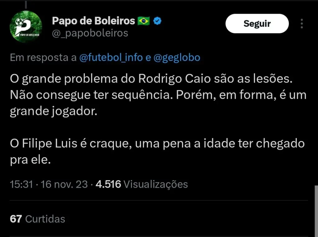 Rodrigo Caio, voltou a ser utilizado pelo técnico Tite, mas devido ao alto índice de lesões, não irá permanecer no clube. Algumas equipes observam o jogador, e devem negociar sua contratação.