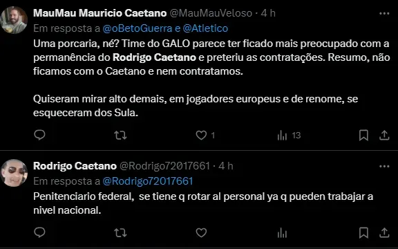 O presidente Ednaldo Rodrigues, na figura do dirigente que estava no Atlético-MG antes da Seleção Brasileira, foi representado no encontro. Caetano se mostrou solidário ao momento do Leão do Pici.