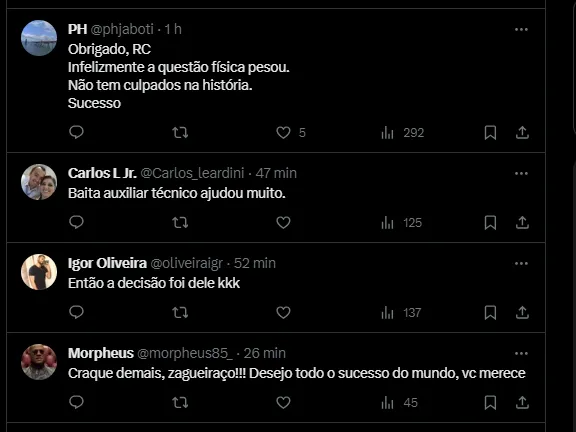 “Ganhei, perdi, tive minhas tristezas, e no meio do ano tive a certeza de que era o momento de sair com o coração muito em paz. Tenho certeza de que o novo ciclo será maravilhoso”, comentou o atleta.