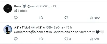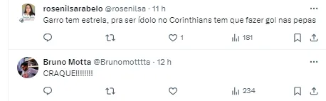 Após o belo gol anotado e ser o craque da partida, a torcida corintiana se derreteu nas redes sociais após a atuação. Confira abaixo algumas publicações (SIC).