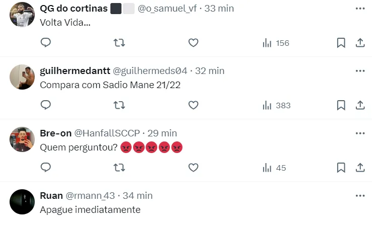Na web, é claro que a boa fase que o jogador vive no futebol do Catar chegou até a torcida do Corinthians, que espera ansiosamente pela volta do jogador se houver alguma oportunidade.