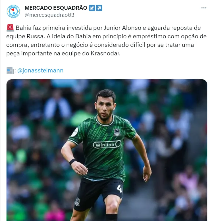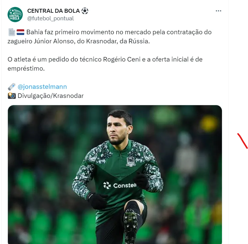O Bahia pretende contar com o futebol de Júnior Alonso por empréstimo até o final do ano, mas pode mudar de oferta e oferecer montante ao time da Rússia para ter o jogador em definitivo. A informação é de Jonas Stelmann.