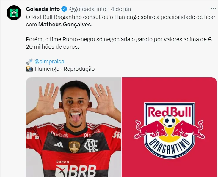 Segundo informações do portal, o time italiano teria pedido ao Flamego que Matheus, jovem promessa do clube, seja adicionado no negócio envolvendo o lateral-esquerdo.