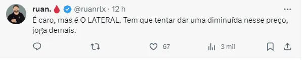 Em reais, na atual cotação da moeda, são cerca de 53 milhões. Mas fato é que a aquisição de um novo lateral passa a se tornar uma das prioridades do Timão, visto que Fábio Santos irá se aposentar.