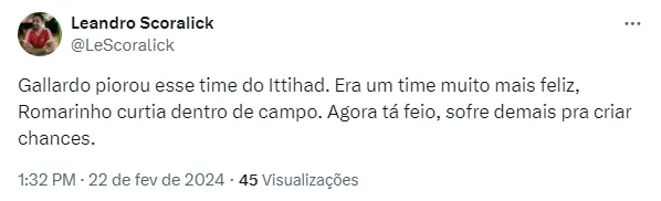 Entretanto, a fonte complementa que um acordo dificilmente aconteceria neste momento. Fabio Torres, em conversa com pessoas próximas ao atleta, ouviu que o desejo de Romarinho é seguir no Oriente Médio.