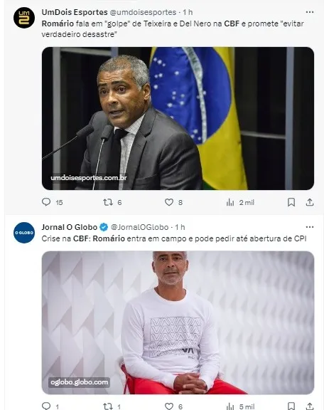 “No momento, temos conhecimento de que dois ex-presidentes da CBF estão se mobilizando de maneira oportunista, aproveitando o atual momento da Seleção, para iniciar um movimento visando dar um golpe na gestão atual e retomar o poder em nosso futebol. É muita cara-de-pau”, escreveu Romário, em sua conta na plataforma X (antigo Twitter).
