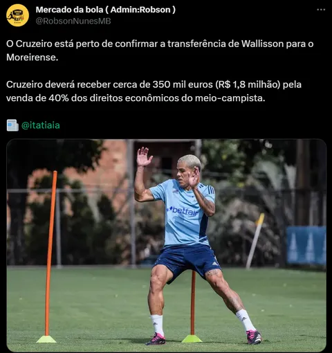 De acordo com as informações divulgadas pelo portal “Itatiaia”, o Cruzeiro está próximo de concretizar a venda do meio-campista Wallisson para o Moreirense, de Portugal.