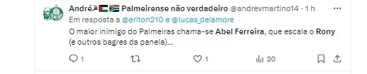Após surgirem notícias sobre supostos problemas no vestiário do Palmeiras envolvendo o técnico Abel Ferreira e alguns jogadores insatisfeitos, incluindo Rony, o atacante se pronunciou para esclarecer a situação e afirmou que sua relação com o treinador português é positiva.
