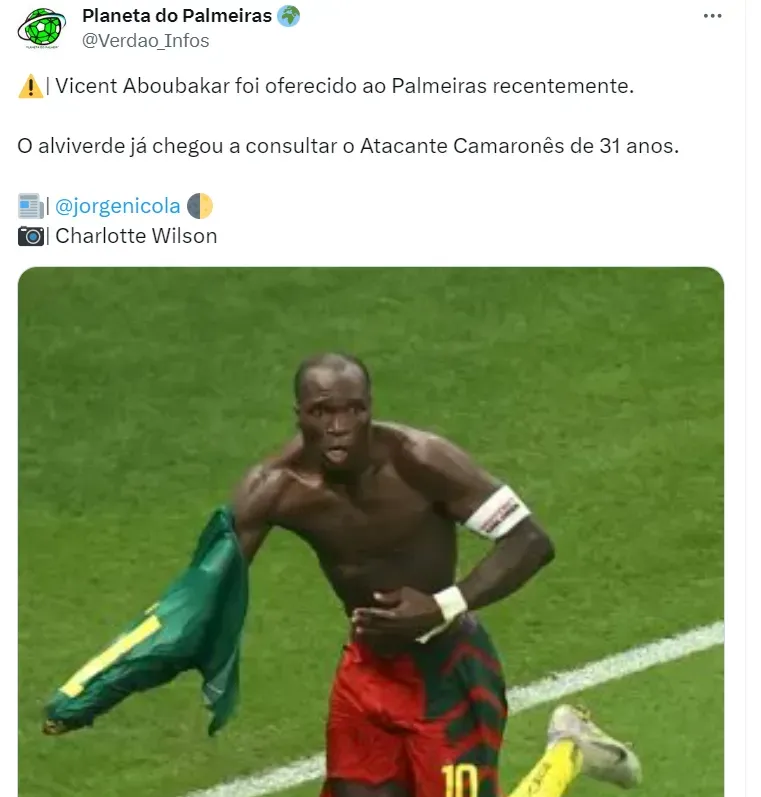 De olho em um camisa 9, o centroavante Aboubakar teria sido oferecido ao Palmeiras recentemente, conforme conta Jorge Nicola. O centroavante está de saída do futebol turco e pode pintar no Verdão para ser o grande camisa 9 do time de Abel Ferreira.