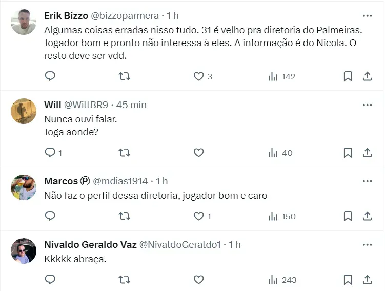 Oferecido, o Palmeiras demostra interesse em contar com o futebol do jogador, uma vez que, de acordo com a fonte, o alviverde chegou a consultar a possibilidade de um acordo acontecer.