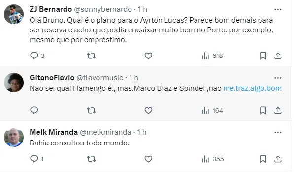 Além disso, o jornalista ainda revelou que, além de Corinthians e Flamengo, a Roma também recebeu consulta por parte do Bahia, uma das principais SAF’s do Brasileirão.