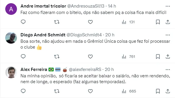Agora, uma saída volta a ser especulada. O jornalista Diogo Rossi conta que a intenção do Grêmio é de usar Ferreira como moeda de troca em alguma negociação.