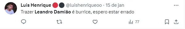 Conforme repercutido pelo portal Notícias do Bahia, Damião pode surgir como uma oportunidade de mercado para o clube de Rogério Ceni, que segue em busca de um novo camisa 9.