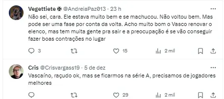 O jogador possui vínculo com o Vasco até o final desta temporada e voltou ao clube em agosto deste ano.