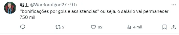 Isso porque, de acordo com o jornalista Jorge Nicola, o centroavante terá um salário na casa de R$ 750 mil por mês, além de bonificações por gols e assistências.