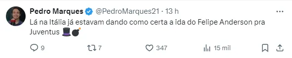 Felipe Anderson, inclusive, estava bem perto de acertar com a Juventus. Alguns jornais da Itália já davam o acordo como certo. Porém, acabou assinando com o Palmeiras.
