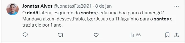 Jorge Nicola conta que um nome que foi oferecido nos últimos dias e deve voltar a ser sugerido é do lateral-esquerdo Dodô, que encerrou 2023 vestindo as cores do Santos.