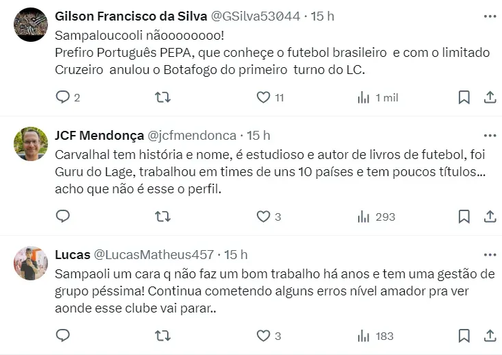 O Botafogo, que demitiu Tiago Nunes, está interessado no trabalho de Jorge Sampaoli, segundo informações Wellington Arruda, em live do programa Panorama Botafoguente.