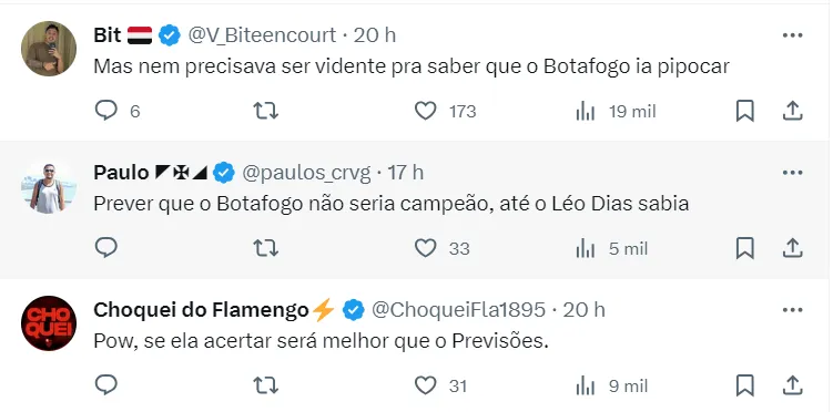 Antes do Botafogo perder a liderança da liga nacional, a Mãe Michelly previu, ainda em agosto, quando o time carioca liderava até de forma tranquila o Brasileirão, que eles não seriam o grande campeão.
